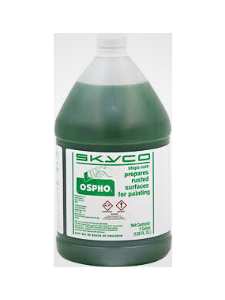 OSPHO, manufactured by the Skybryte Company since 1947, is a rust-inhibiting coating and metal treatment, not a paint. Its primary function is to chemically convert iron oxide (rust) into iron phosphate, an inert, hard black substance. It is composed of phosphoric acid, dichromates, and wetting agents.