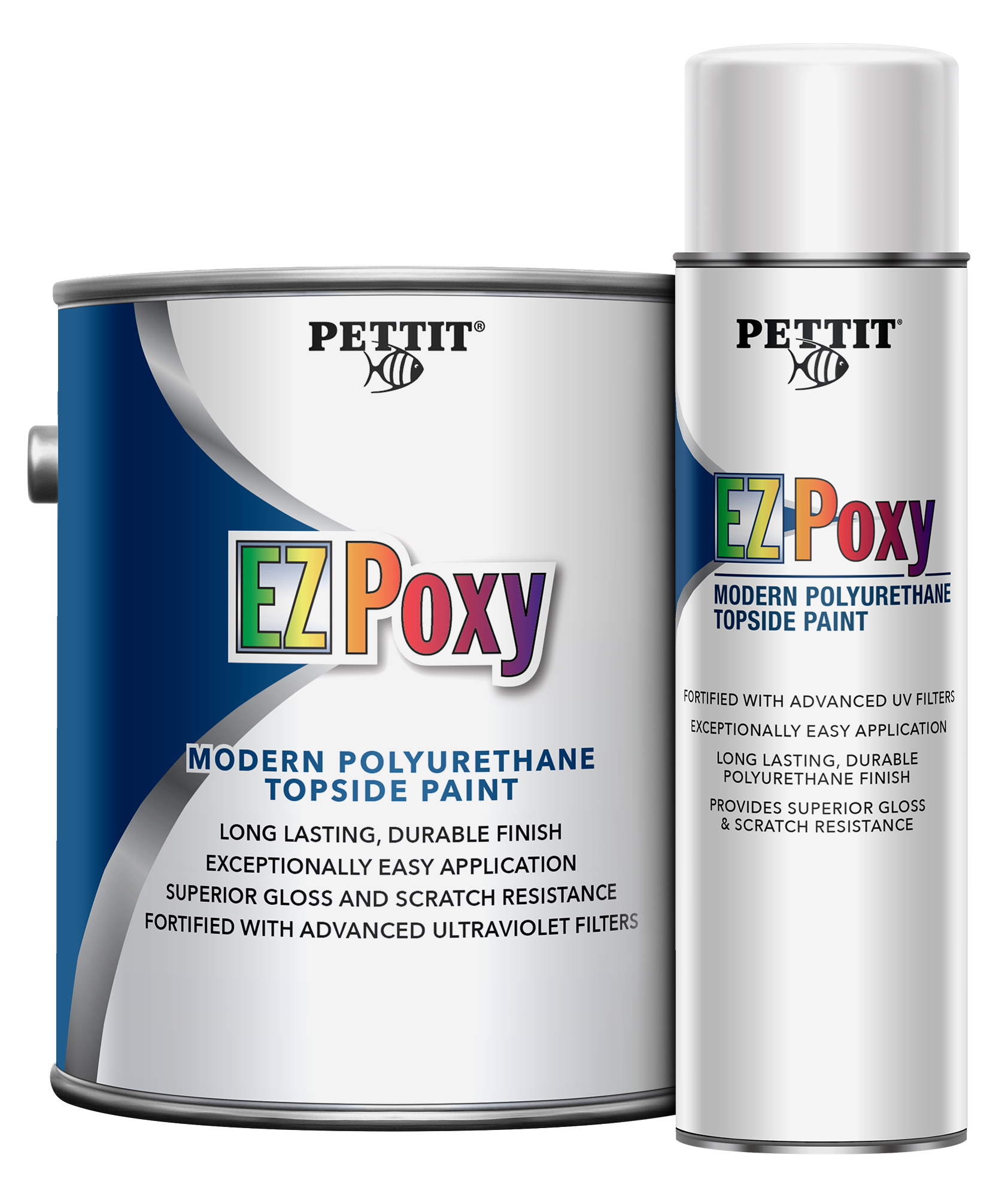 Pettit EZ-Poxy topside paint 3175 is a single-part, high-gloss polyurethane marine paint in white. It is known for being easy to apply and is suitable for use on fiberglass, wood, and metal surfaces above the waterline.
