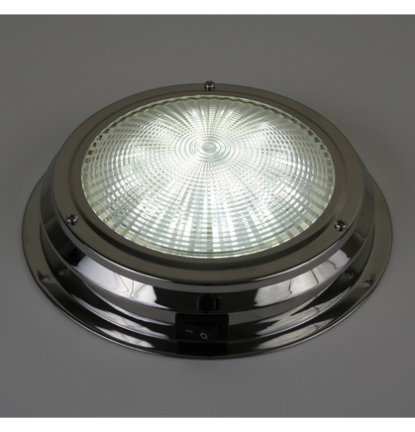 Traditional surface mount stainless steel dome light. Side mouned on/off switch. Features 20 each SMD 2835 warem white (4000k) LED's.